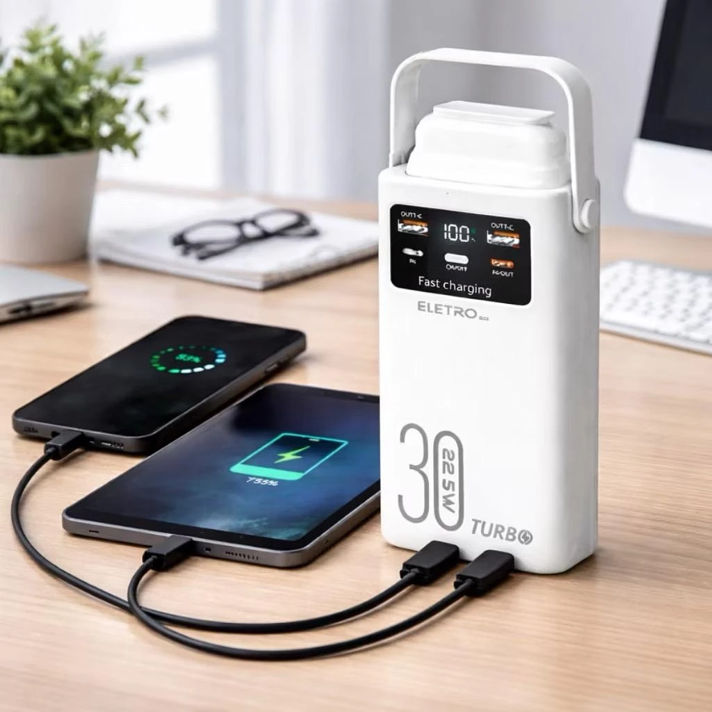 Power Bank 30000mAh 22.5W PD Carregamento Rápido com Lanterna e Múltiplas Saídas –