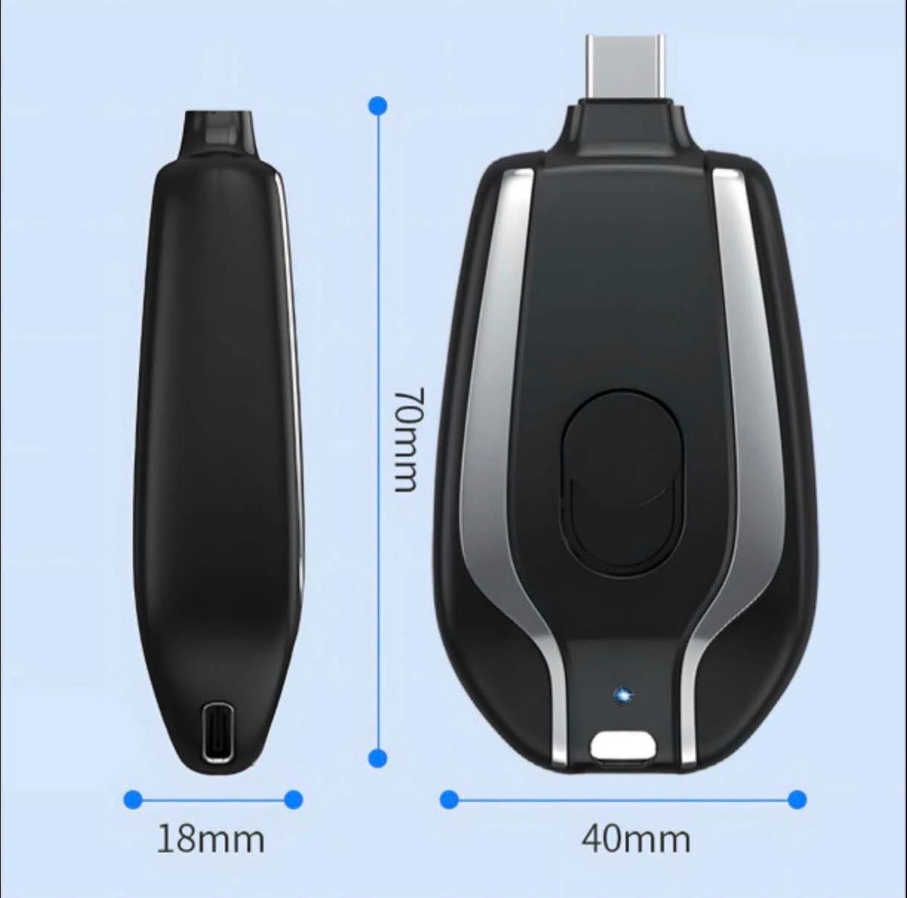 Mini Power Bank 1500mAh Tipo-C | Carregador Portátil Com Chaveiro