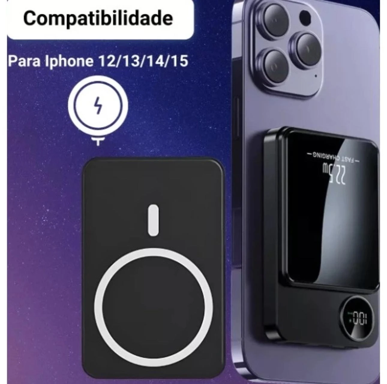 Carregador Portátil Magnético 5000mah Indução Turbo 22.5w