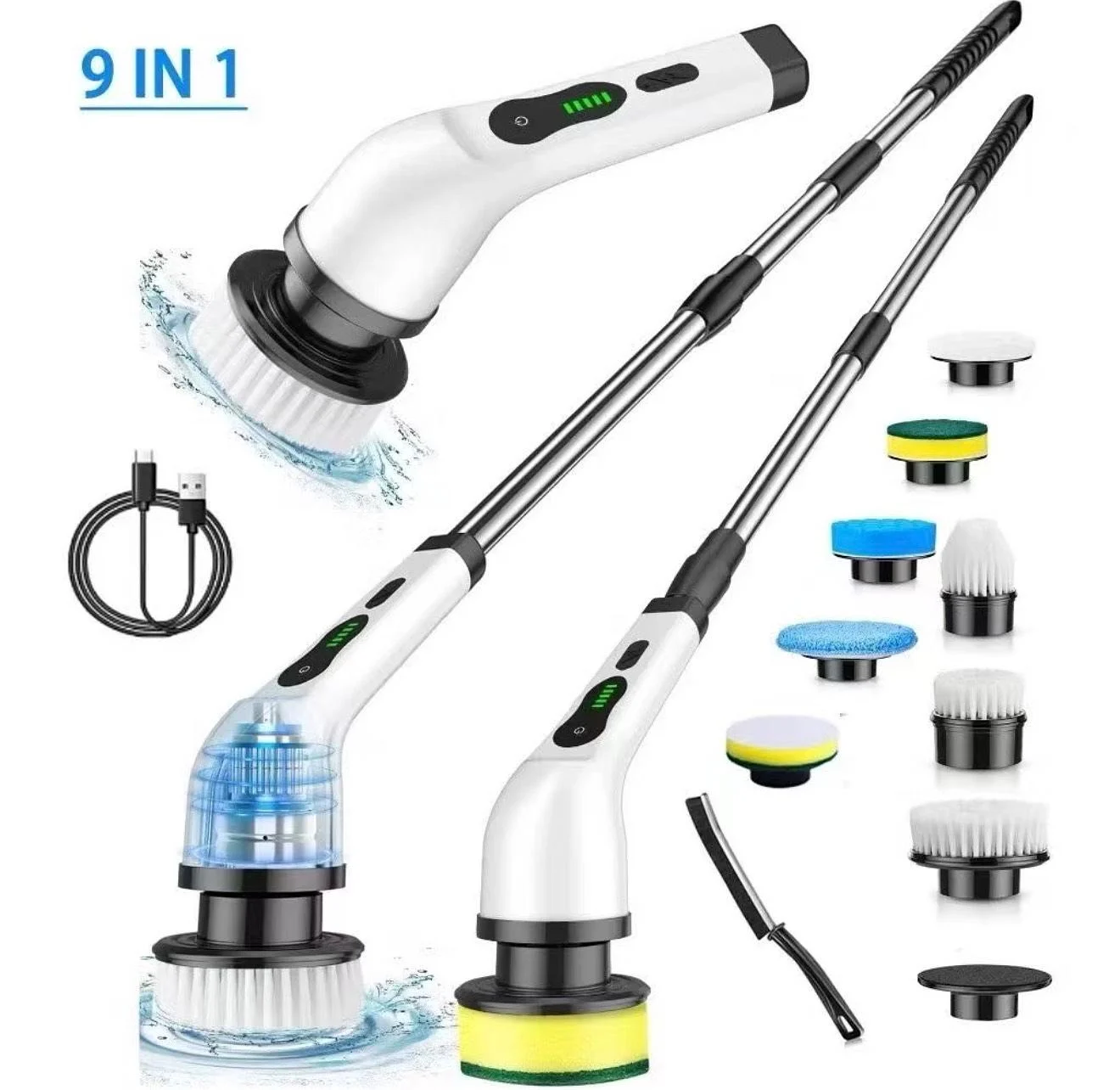 Escova De Limpeza Ajustável Janela Banheiro e Cozinha Ferramenta 9em 1 Recarregável