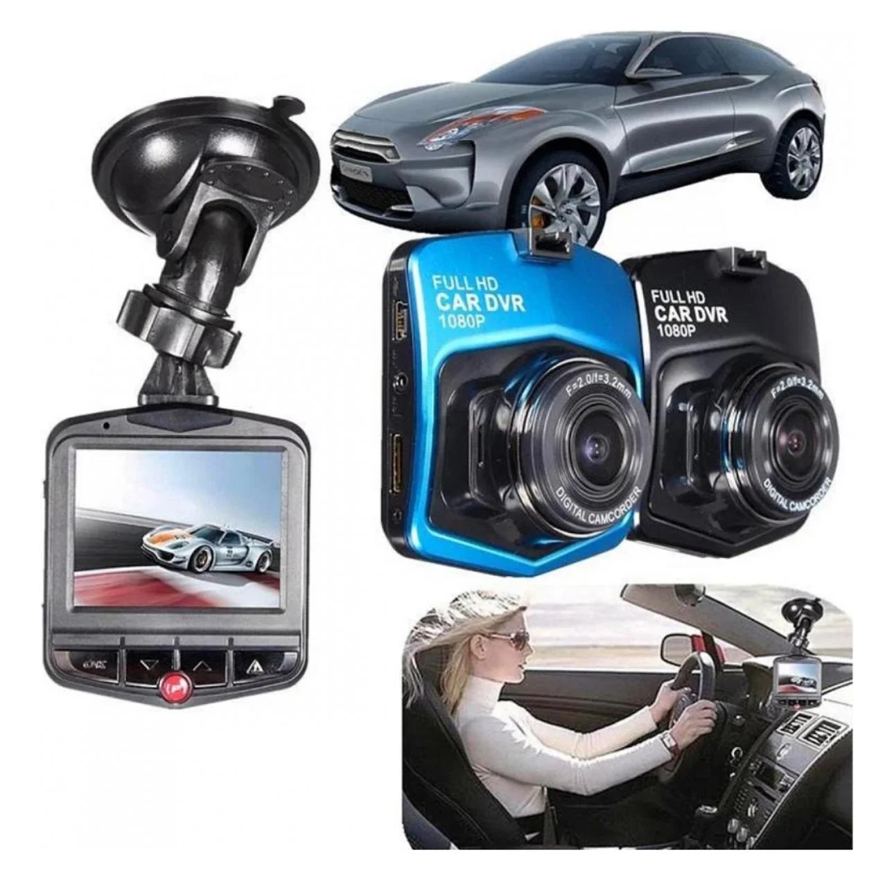 Dvr Automotivo Câmera Frontal Interna Ré Grava Imagem Som