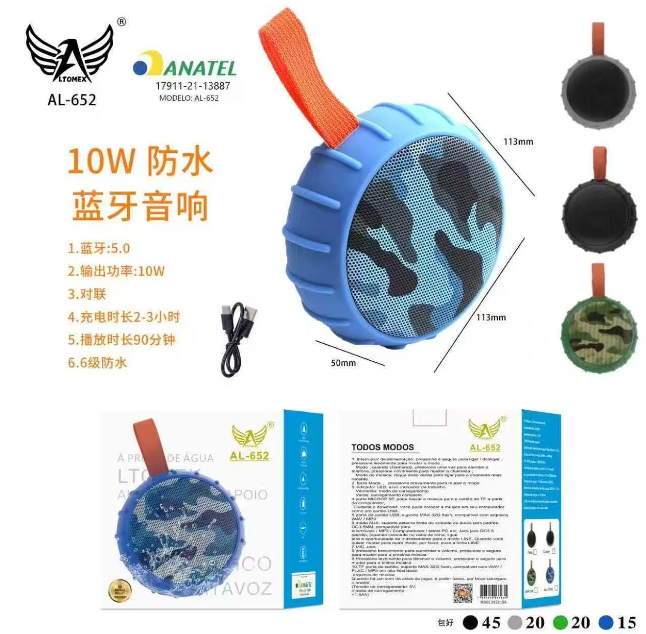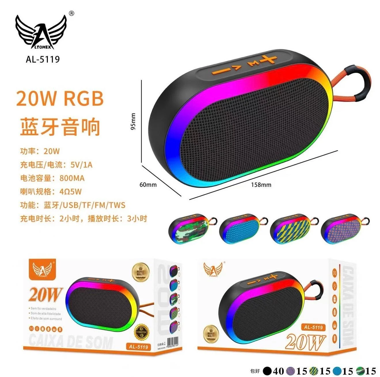 Caixa de Som Altomex AL-5119 RGB ou similar com 20W de Potência e Bateria de 800mAh