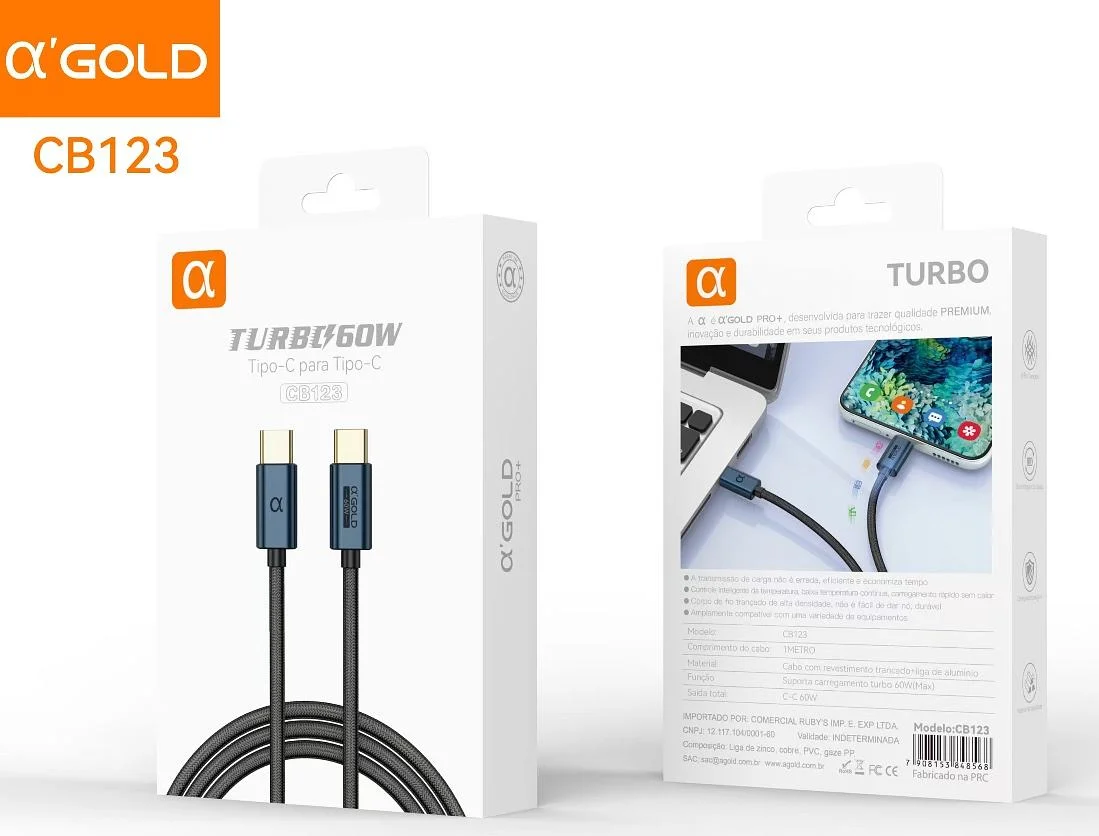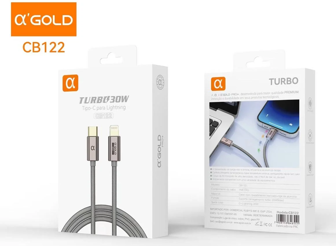 CABO DE CARGA RÁPIDA TURBO POWER 30W TIPO C PARA IOS 1 M METROS AGOLD