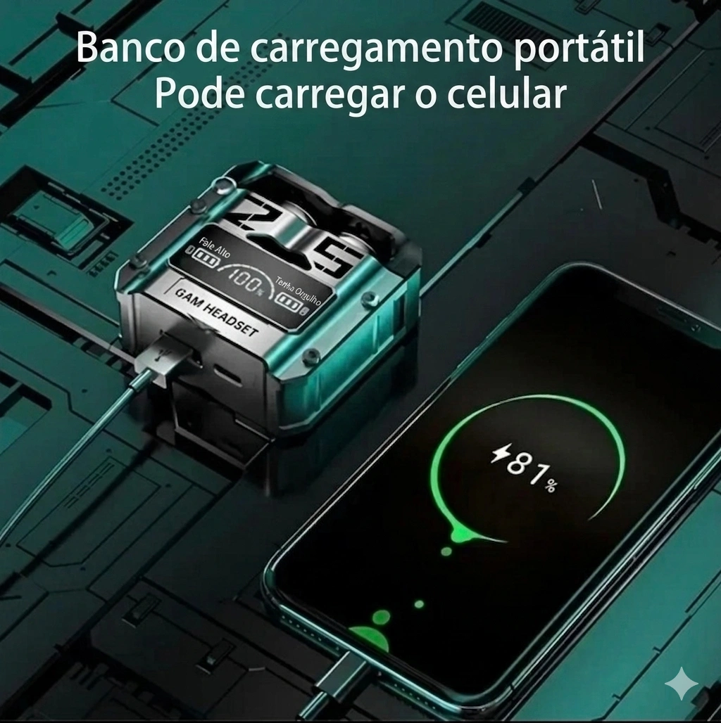 Power Case Integrado: Além de carregar os fones, a case robusta com display LED informa o status da bateria em tempo real.