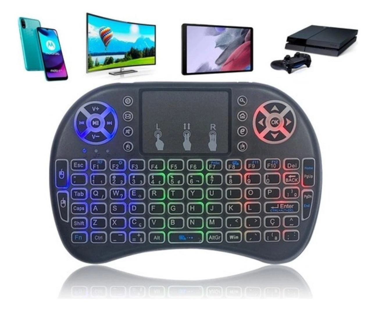 Teclado Sem Fio com Touchpad RGB