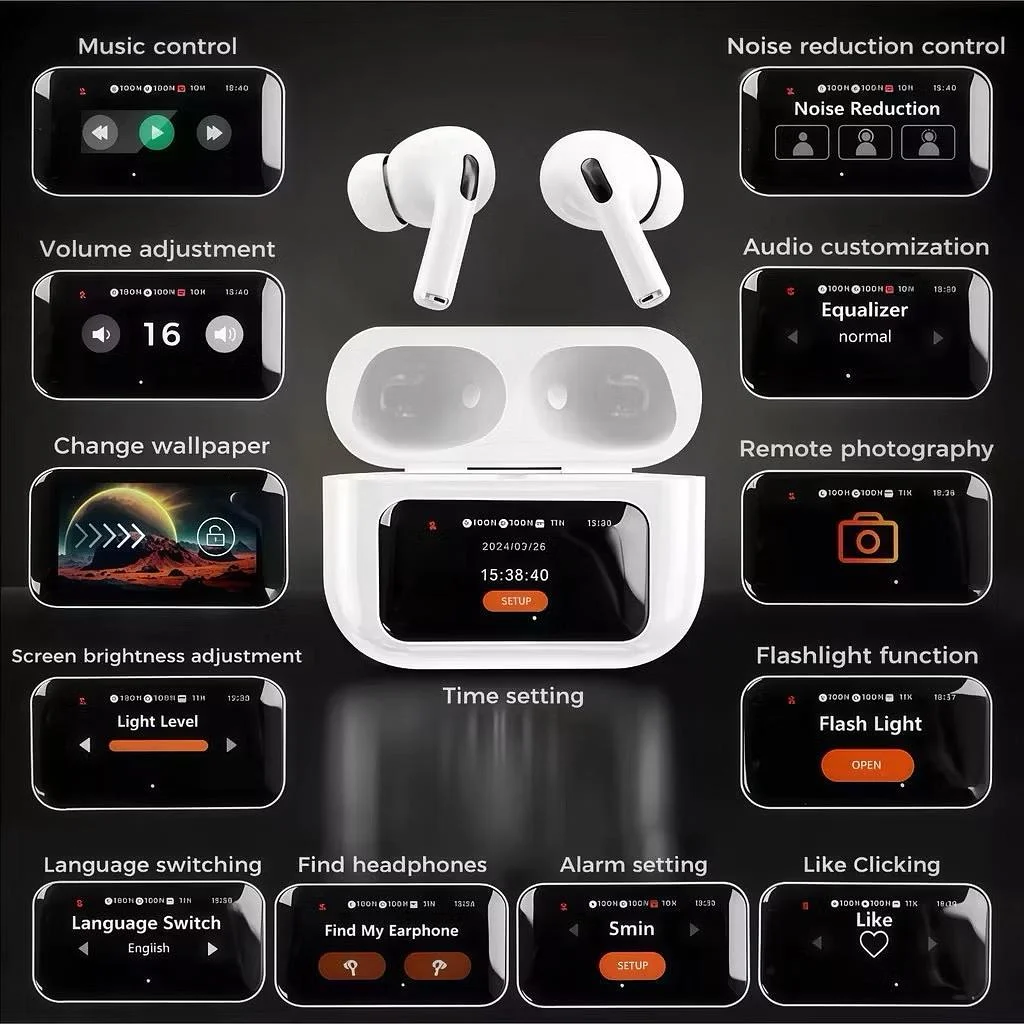 Touch Screen ANC Fones De Ouvido Sem Fio TWS Ruído Cancelando O Fone Bluetooth 5.3 Suporte APP Longa Duração