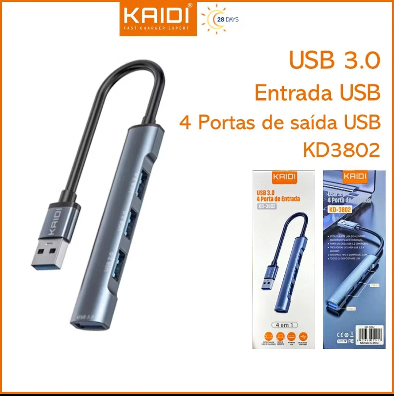 USB 3.0 4 Porta de Entrada com Saida USB Kaidi KD-3802