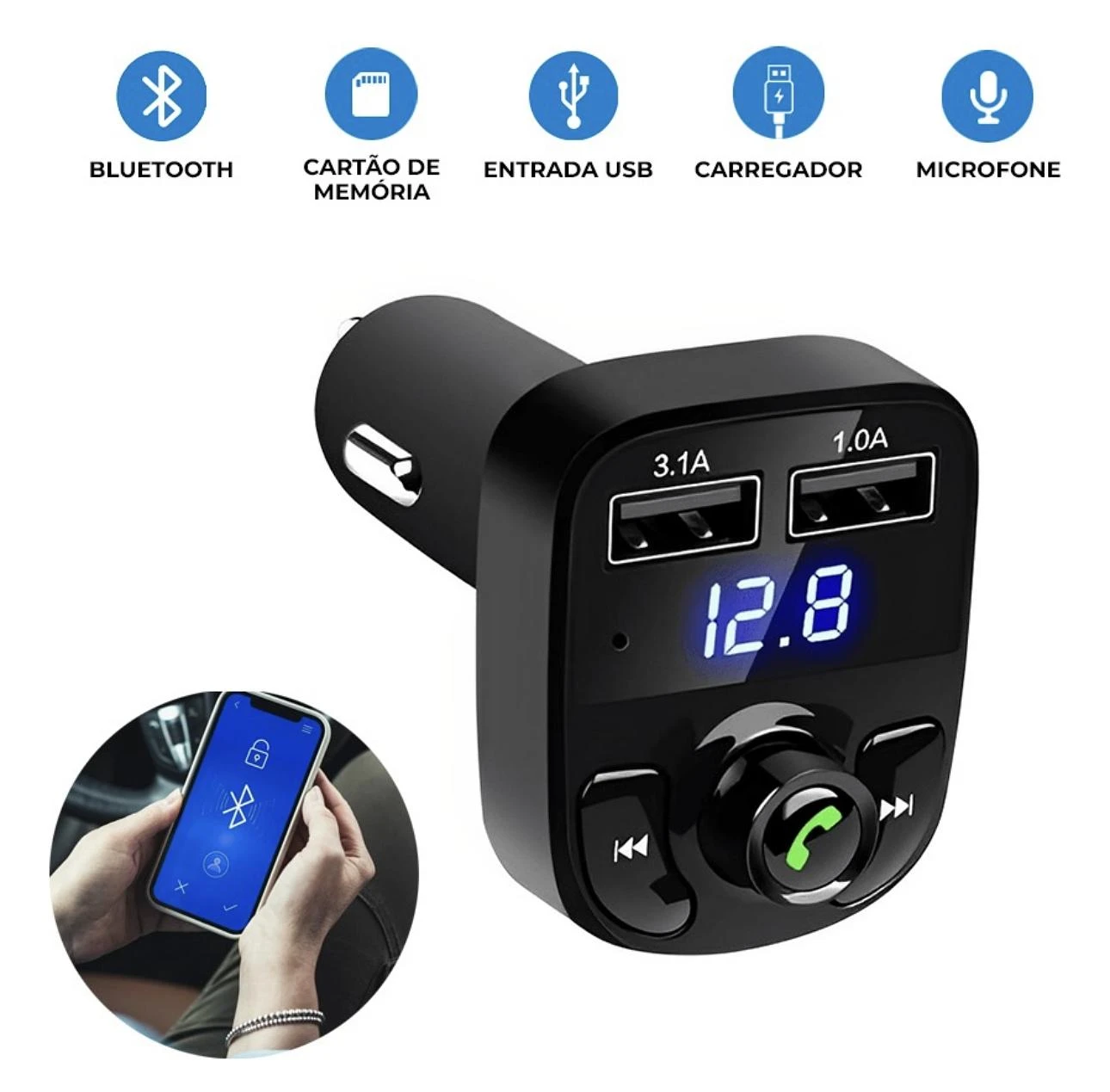 Adaptador Carregador Usb Bluetooth Veicular Fm