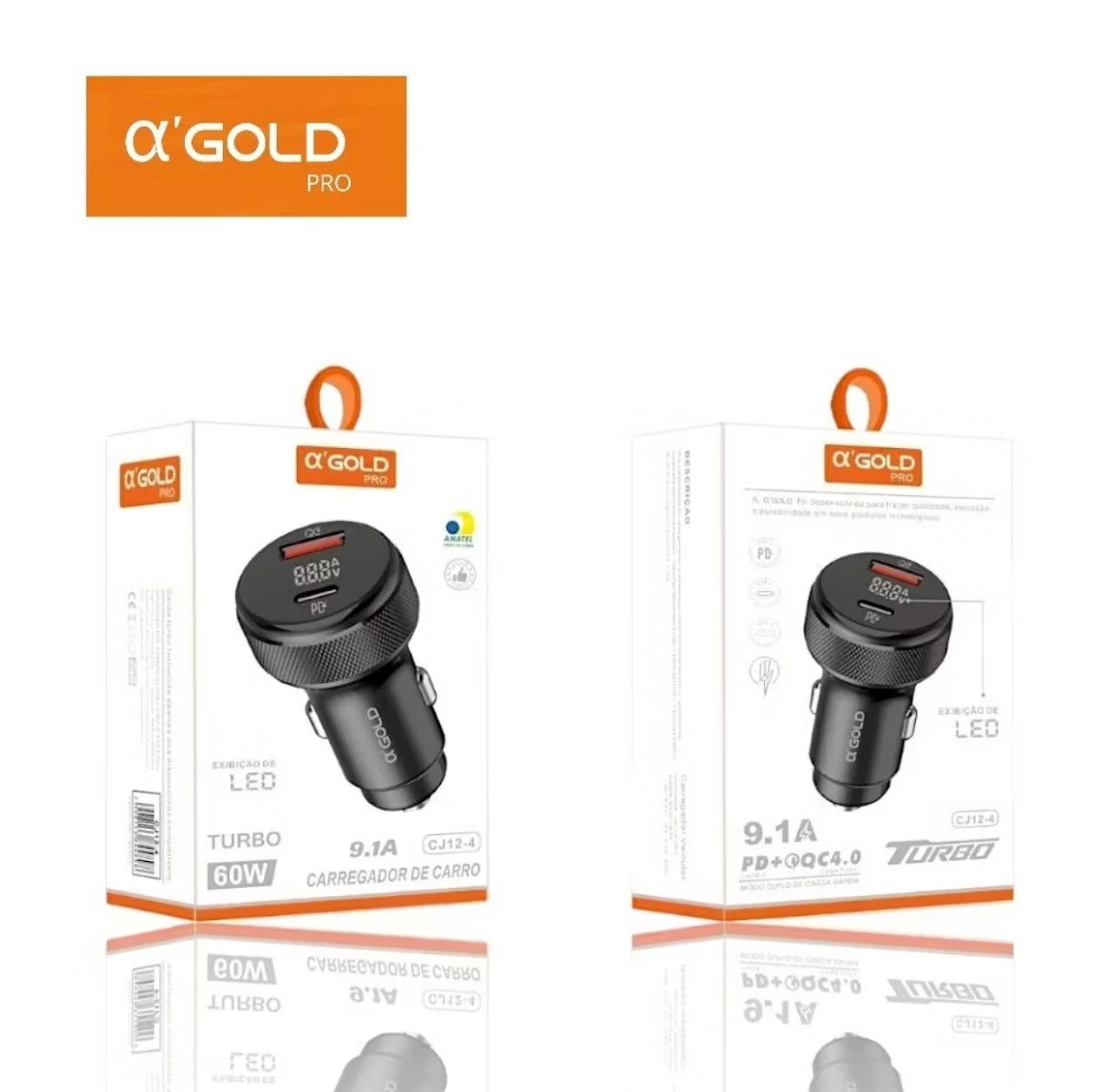 Carregador Veicular Turbo 60W 9.1A com Exibição de LED