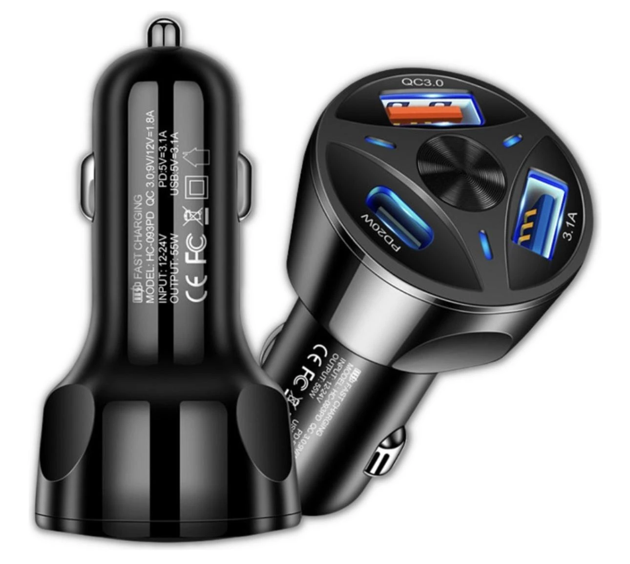 Carregador Veicular Turbo 55w 3 Portas-2 Usb 1 Pd