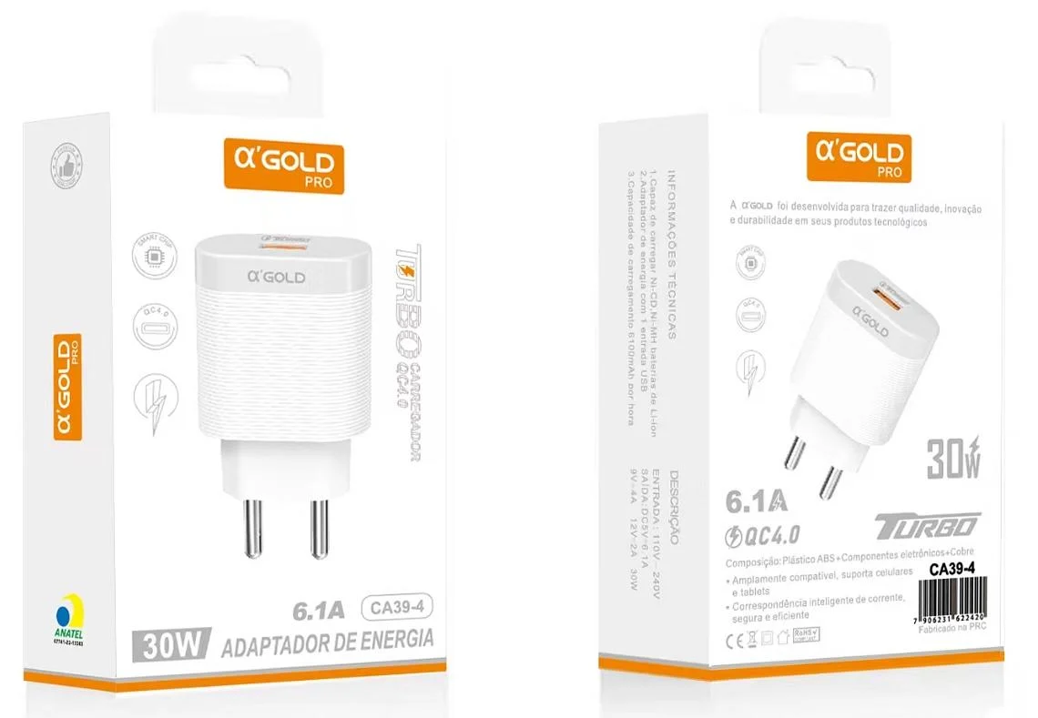 Fonte Turbo 6.1a uma usb 30w —agold