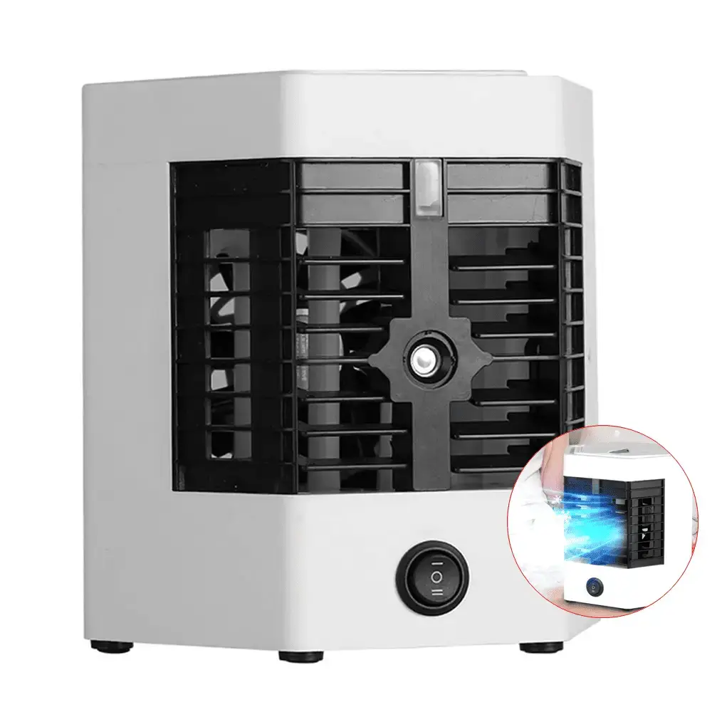 Climatizador Portátil solução prática para manter o ambiente fresco onde estiver. Compacto, leve e fácil de usar, oferece vento potente com 3 velocidades e modo suave. Design moderno em branco, ideal para mesa, quarto ou escritório. Velocidade ajustável, baixo consumo e funcionamento silencioso. Perfeito para dias quentes, com excelente custo-benefício.