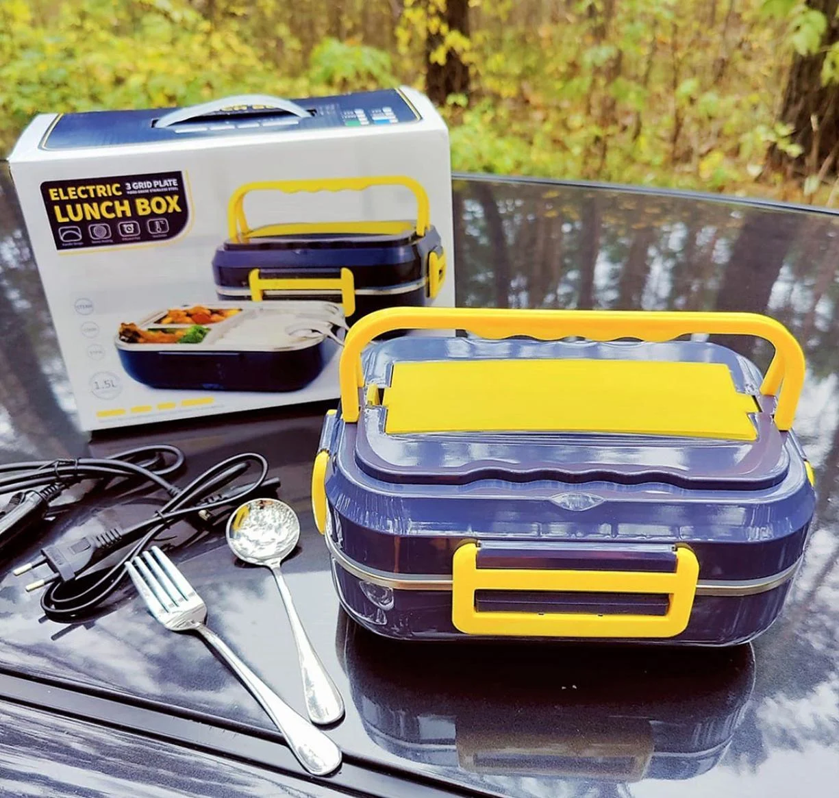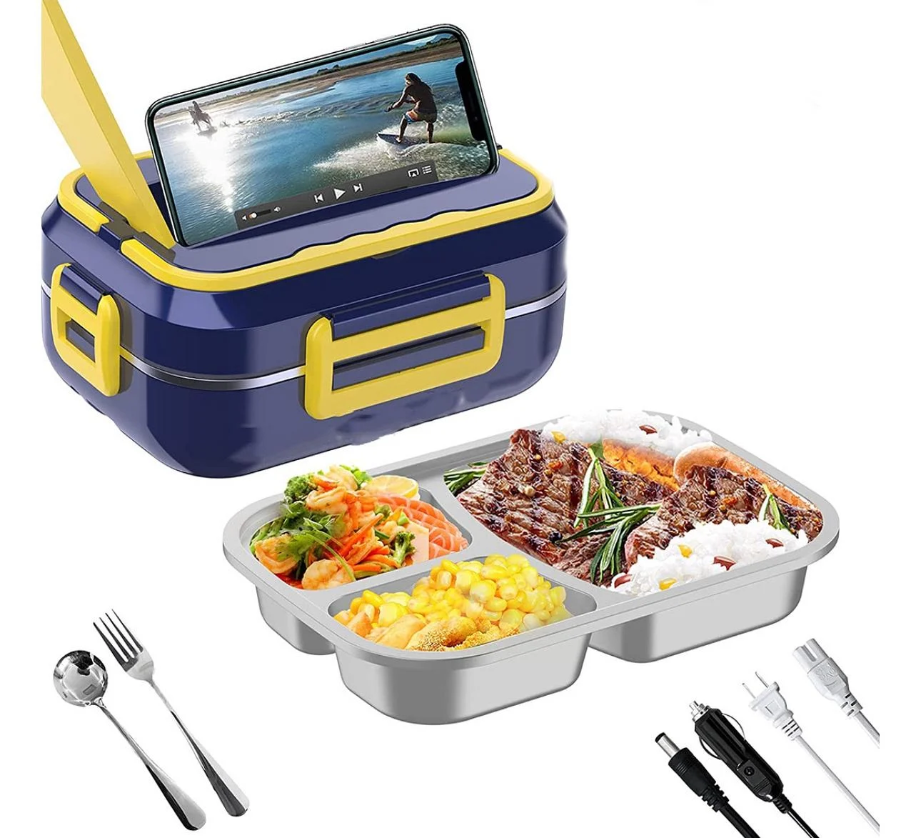 Inclui talheres em aço, cabo de alimentação e bolsa de transporte. Fácil de usar: basta ligar à tomada comum e saborear refeições quentes onde estiver, seja no trabalho, na escola ou em viagens. Durável, fácil de limpar e perfeita para quem valoriza praticidade e qualidade.