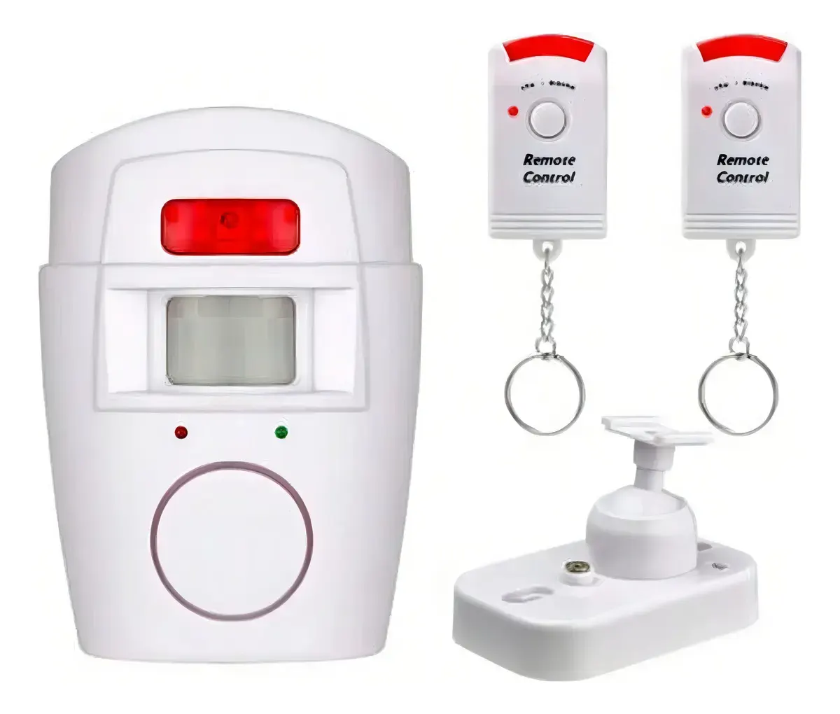 Kit de alarme sem fio completo para proteção residencial. Unidade principal com sirene integrada e visor de status, acompanhada de 2 controles remotos com porta-chaves para facilitar a abertura de portas ou janelas. Instalação rápida, funcionamento sem fios e mensagens de confirmação via LEDs. Ideal para casas, quitinetas e pequenos comércios que buscam tranquilidade.