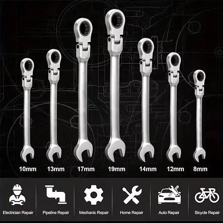 Conjunto de Chaves Combinadas 8-19 mm em aço de alta resistência, perfeito para reparos domésticos, mecânicos e de bicicleta. Cada peça oferece boca aberta para encaixe rápido e encaixe box para torque estável, com acabamento polido que evita deslizamento. Leve, compacto e durável, é ideal para caixas de ferramentas, oficinas ou DIY.