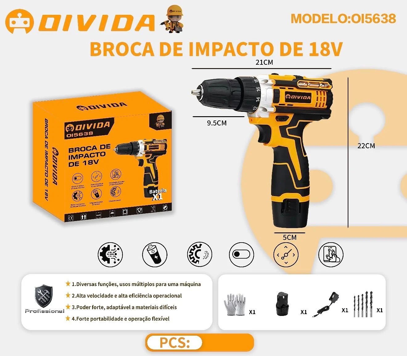 Parafusadeira 12v Bateria Sem Fio 10mm Com Brocas linha domestica