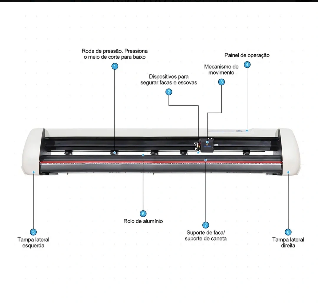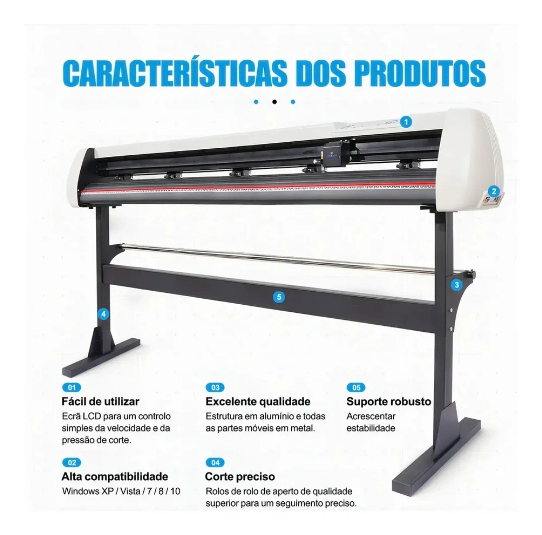 Plotter de Recorte de Vinil: máquina de precisão para adesivos, etiquetas e sinalização. Corte vinil, papel adesivo e filmes com alta exatidão, ideal para comunicação visual, artesanato e pequenos negócios. Estrutura robusta com rolo de alumínio e painel de operação simples, oferecendo desempenho estável, cortes nítidos e produção eficiente para resultados profissionais.
