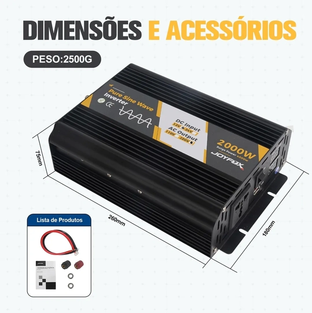 Inversor Joyfox 2000W com pico de 4000W 12V/127V — energia confiável onde precisar
