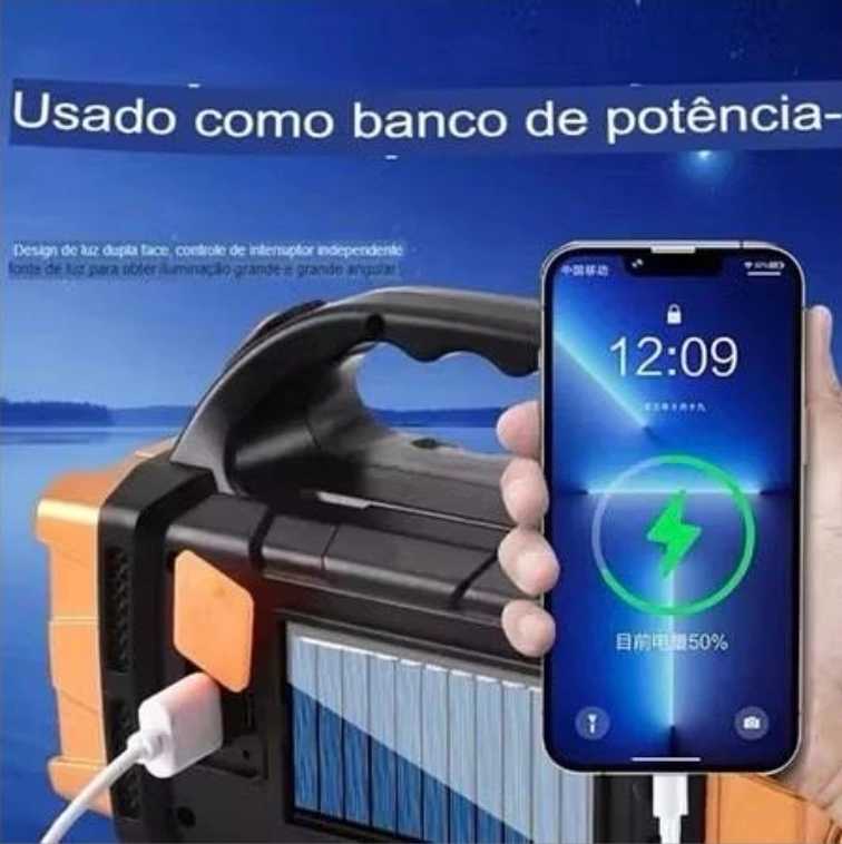 Lanterna Holofote Super Led Potente Recarregável Usb Solar