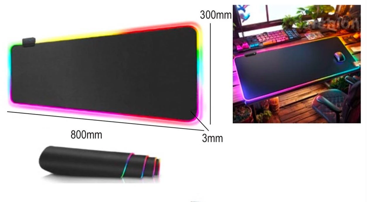 Mouse Pad Gamer RGB 80x30cm com superfície ampla para movimentos precisos de mouse e teclado. Iluminação RGB nas bordas cria um setup imersivo, sem atrapalhar o foco nos jogos. Com 3 mm de espessura, oferece conforto e controle estável, e a base antiderrapante evita deslizamentos durante sessões intensas. Enrolável e prático para levar em viagens, perfeito para gamers, streamers e produtividade.