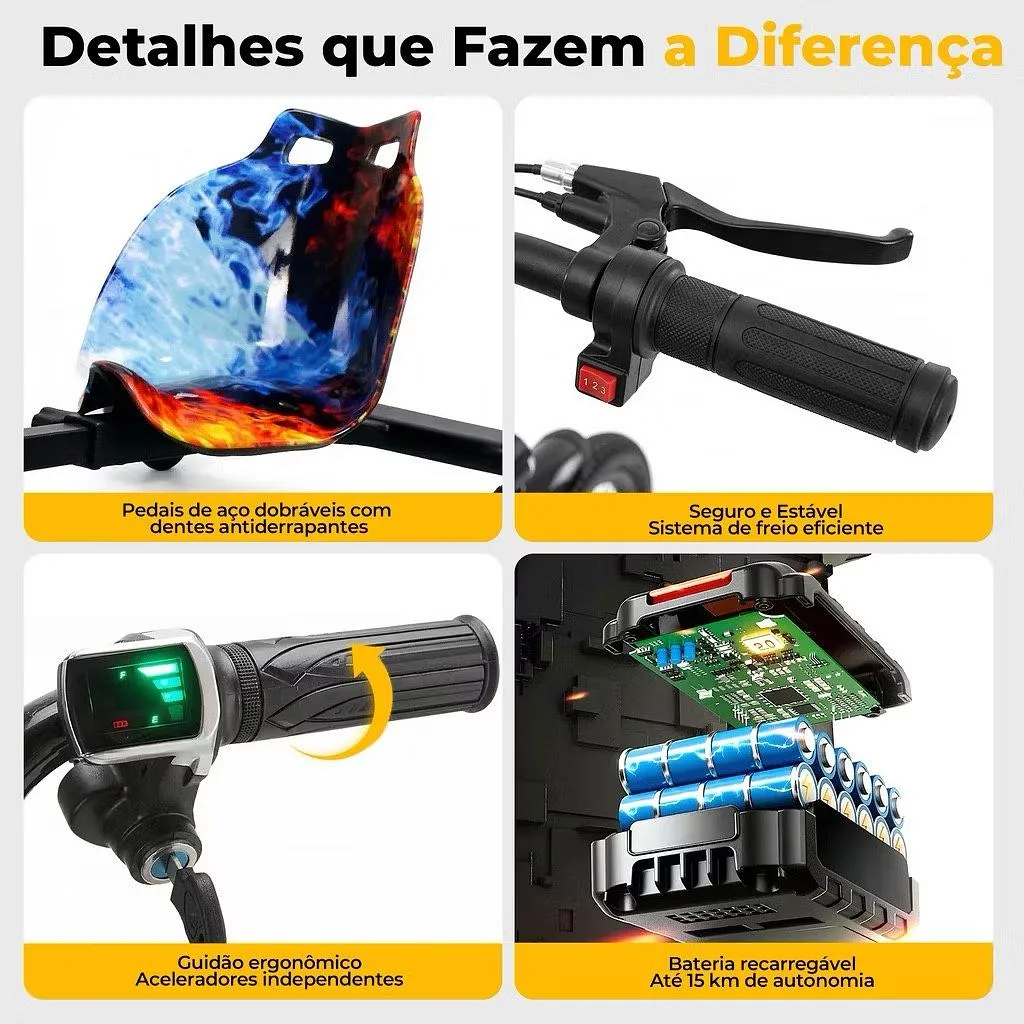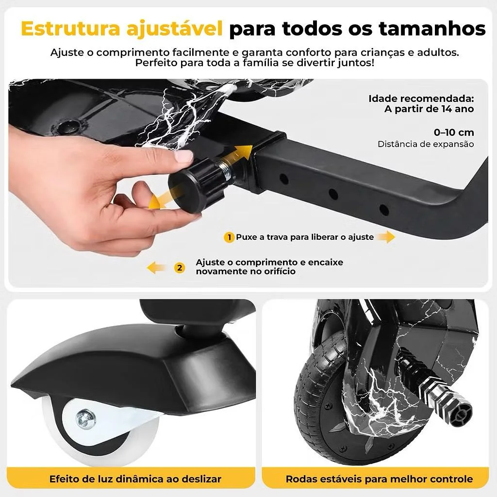 Iluminação LED, buzina e conectividade Bluetooth para música. Recarga rápida e construção resistente garantem uso em quintal, parque ou praça sob supervisão. Perfeito para quem busca mobilidade com emoção.